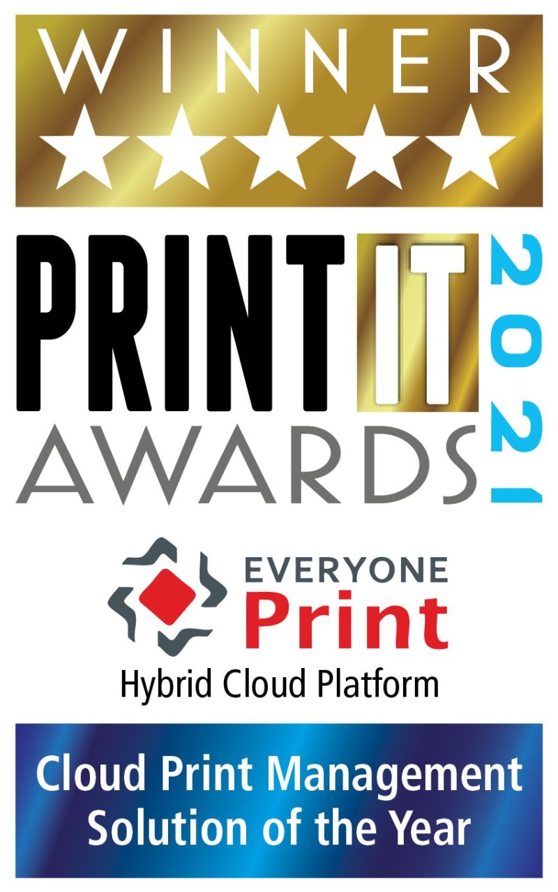 EveryOne Print - Hybrid Cloud Platform wins the Cloud Print Management Solution of the Year at the Print IT Awards 2021.